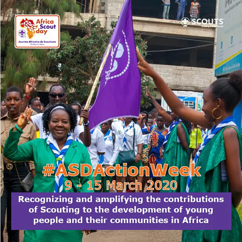 - Following cancellation of the Africa Scout Day celebrations initially planned for 13–16 March 2020 in Uganda, the Africa Scout Region has launched a week-long action campaign dubbed ASD Acrtion Week, running from 9–15 March 2020.