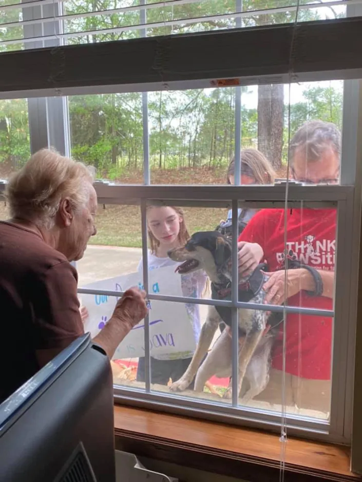 Shana, her husband (an Eagle Scout) and their four kids (all in BSA) also visit a local nursing home every Monday with their dog, interacting ‘through’ the closed windows with the residents who have been quarantined from the early days of the virus situation. They also play tic tac toe with them on their window using a dry erase marker, cheering up everyone involved, as you can see in the photos below! It's true, Scouting never stops!