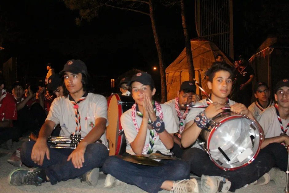 The band shares many of their performances on their own YouTube channel . At one gathering, with the campfire alight and local Scouts sitting all around, the Syrians perform with gusto, beating the drums and then leaping onto the shoulders of the bandmates waiting behind them, where they lower themselves towards the ground, and continue to play, even while upside down. Big grins spread across their faces. The crowd claps and laughs as the music reaches a crescendo. Such recognition spurs Elewi on. One of the most touching moments for the group came at the 12th Euro-Arab meeting in Istanbul in February, when Hasan Dinçer Subasi, the president of the Scouting and Guiding Federation of Turkey, told delegates the Syrian Scouts had made the Movement’s “dream come true” by forming a Scout band.