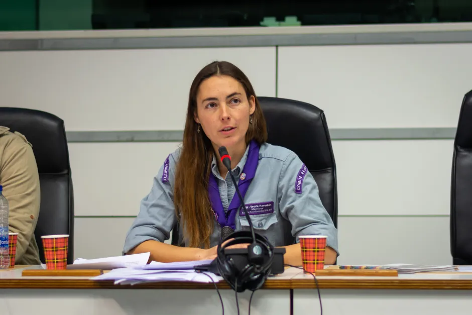 The closing speech of “Chip” Veerle Haverhals, a member of the European Scout Committee, reiterated the Scout commitment to the cause of refugees and migrants:
