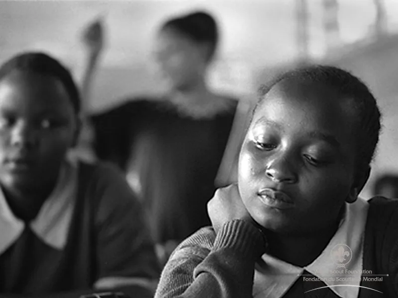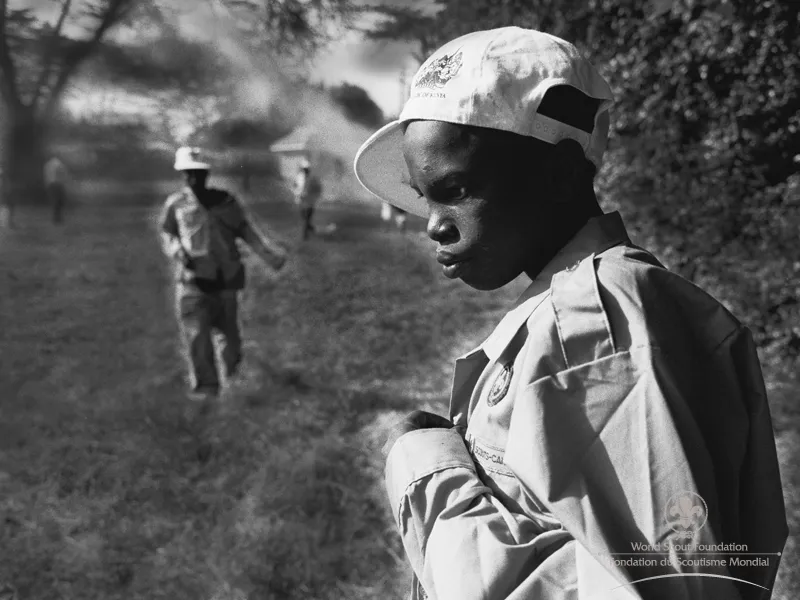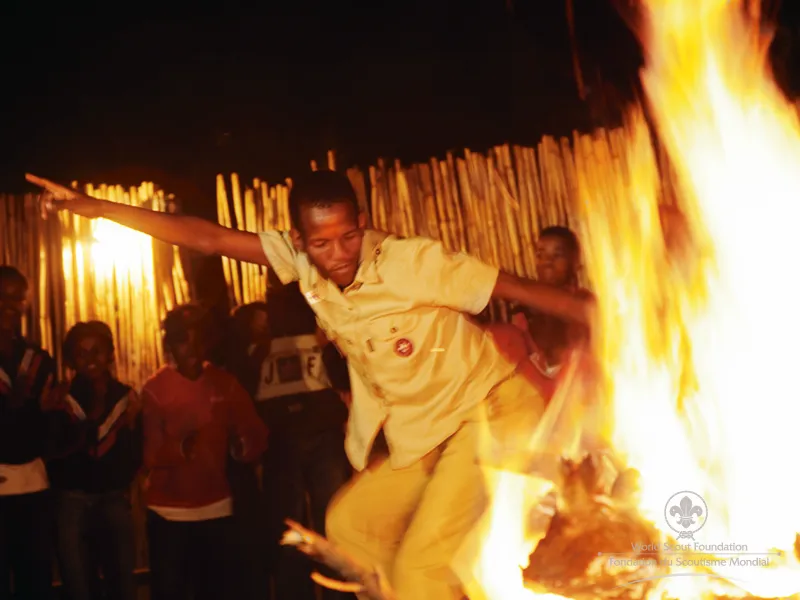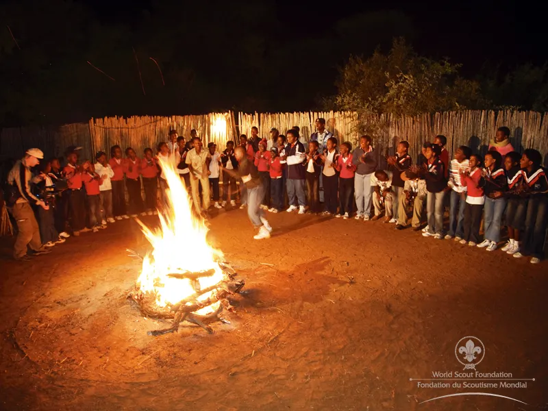 A Scout sings and dances at a campfire … this image is timeless … he is in a special world away from his regular surroundings … behind him is darkness and the unknown. Around him are his Scout friends, and in front is a warm and welcoming fire … he sings, he jokes, he dances … he builds his confidence, he is among friends who join him … he can be anything he wants here, he is anything he wants to be! This could be any year since the founding of Scouting in 1907. It could be any place in the 155 countries where Scouting has taken root, and this young man could be any one of the 28 million young men or women in Scouting today, or any of the 500 million who have worn a Scout uniform in the last 100 years. This particular young man is Jacob, a 16-year-old Scout, running a course on HIV/AIDS for children from a deprived community near Mafikeng, in South Africa, one hundred years after Scouting started. Jacob and his fellow Scouts lead a class of 30 children, aged between 9 and 12 years, most of their students are AIDS orphans, and Jacob uses the campfire to build a sense of trust among his students and to help these children believe that change is possible … the children sing, dance, grow … and believe! Jacob and the other Scouts (aged 14 to 17 years) are now the “older generation” in the fight against HIV infection in South Africa … their job is to instil in the “younger generation” a sense of hope for the future, a confidence that responsible behaviour is OK, and a belief that their own actions can help them grow up safely. As Jacob says, “We are making a gift to future generations in Africa – so that they will live without AIDS.” The campfire scene is timeless, and the work that Jacob and other Scouts are doing is timeless too. Like generations of Scouts before them, they have developed leadership skills, and like the Scouts before them, they want to use these skills to change their world! And guess what? They will succeed!