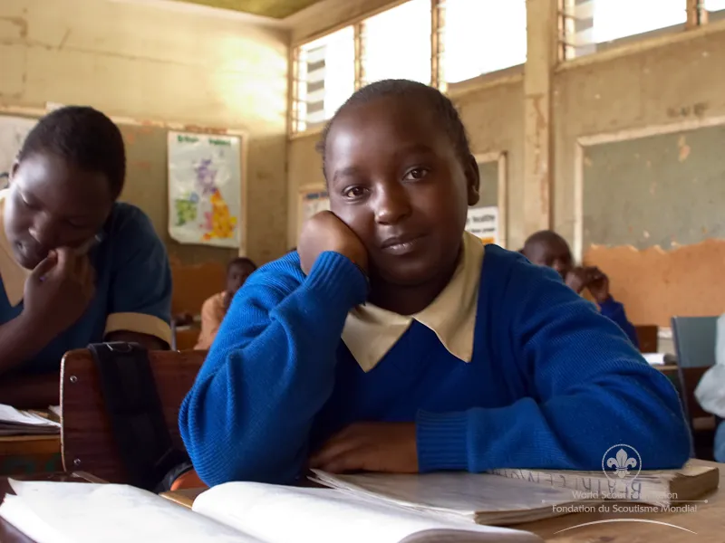 “When my father died and my mother got sick, there was no place to go” says Nekesa. “My grandmother was already taking care of my cousins and there was nobody else! So when I came with my brother, Peter to the Kenyata Market area we were on our own. We could sometimes find work there carrying goods for the stall-holders and some people even gave us food or money. But life is tough there – some men wanted to have sex with me, but my brother and his friends stopped them. That made me very frightened. My brother became very popular within the gang that we lived with and they helped a lot. One day, my brother was approached by a Scout leader called Inguru and some boys from the Scouts. That day changed our lives. The Scouts invited us to the Magiwa School where we were able to wash and get some clean clothes – we were very dirty! They found the money for us to go to school and even got some training for my brother to learn tailoring – he’s very smart! Now we live in a wonderful place in Kibera. It’s still in the slum, but it’s our place. I go to school every day and my brother earns money from tailoring – the Scouts got him a sewing machine! We meet once a week with the other street Scouts in Kenyata market – we put on our uniforms and we’re so proud - it’s like we’re living in another world now – thanks to the Scouts!”